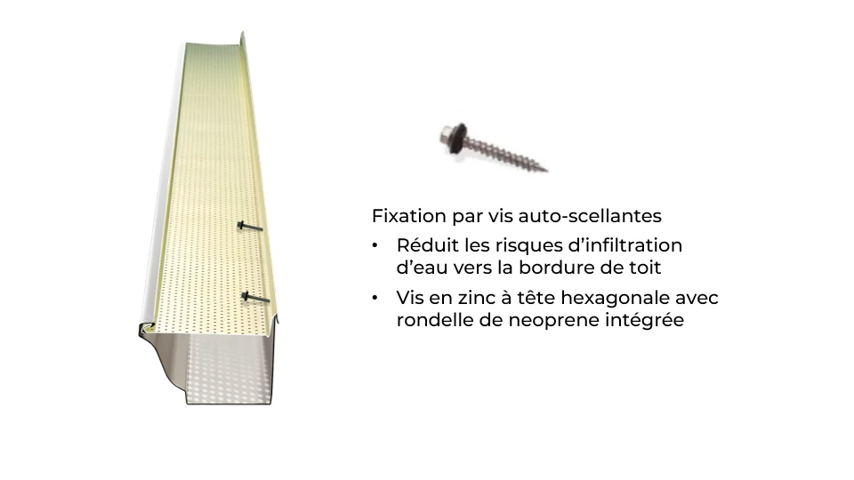 – un crochet continu intégré qui soutient la gouttière sur toute sa longueur.