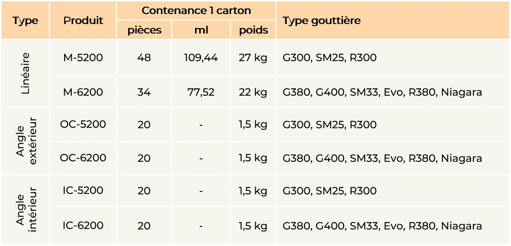 - Renforce la gouttière sur toute sa longueur et protège contre les intempéries (fortes précipitions, cyclones, la grêle, le gel et résiste au poids de la neige)