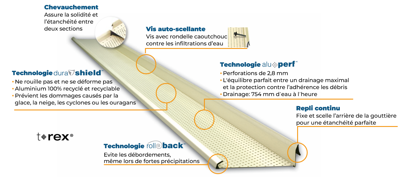 Le T-Rex est compatible avec les modèles de gouttières suivants :
