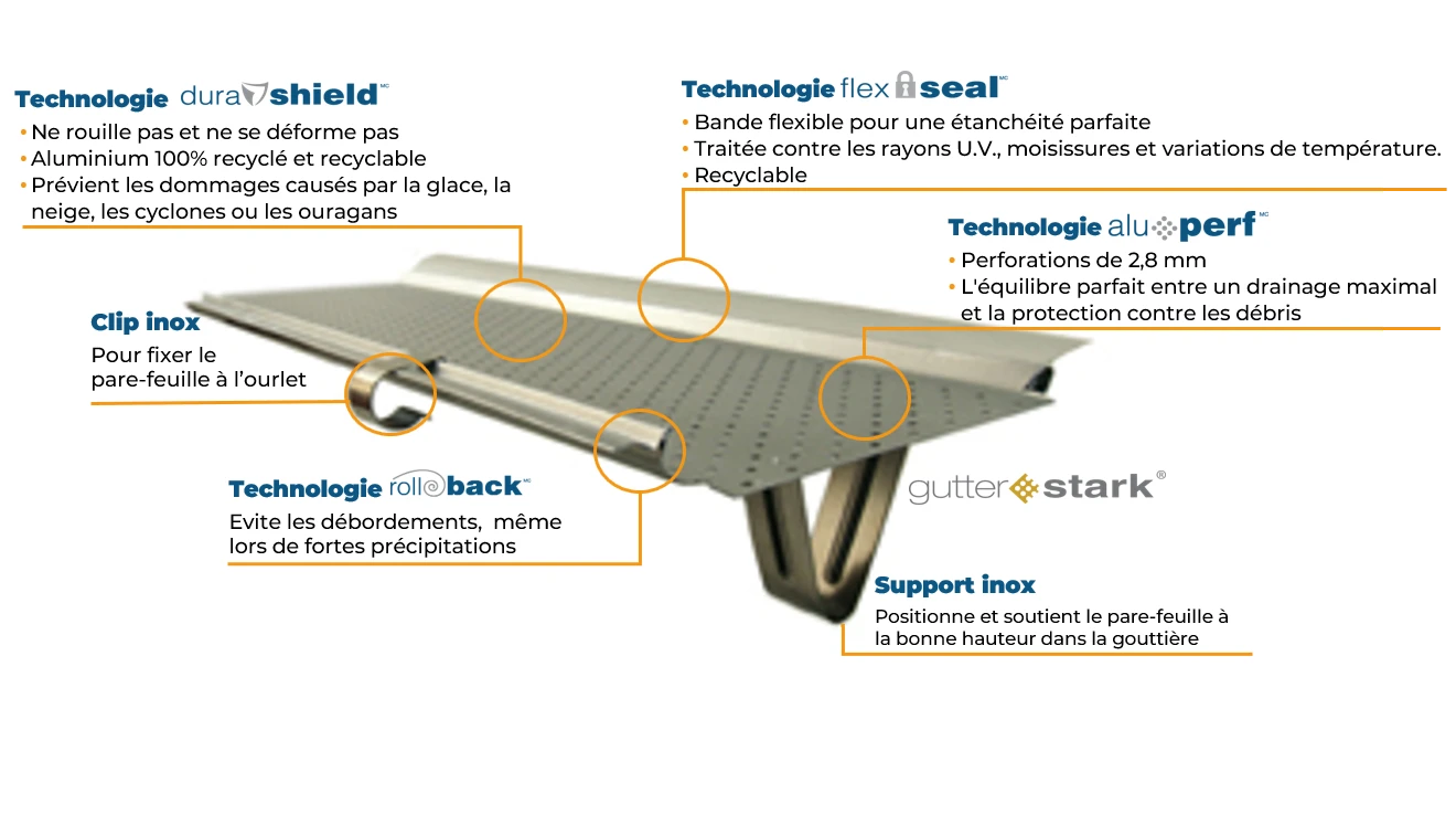Cette protection pour gouttière associe robustesse, performance et esthétisme. Elle joue un double rôle :
